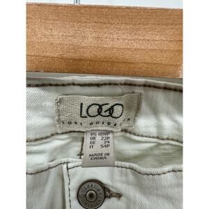 LOGO Lori Cream White Cropped Wide Leg Denim Jeans Womens Size 18WP Frayed Hem