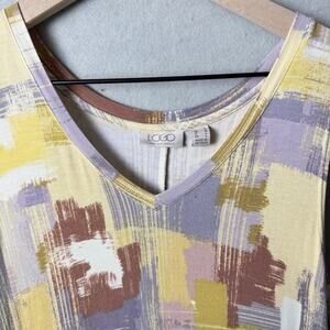 Keywords: LOGO by Lori Goldstein, maxi dress, sleeveless dress, boho style, colorful print, summer dress, casual chic, resort wear, soft knit, flowy silhouette