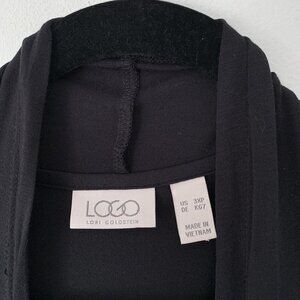 Elevate your wardrobe with this Lori Goldstein LOGO cardigan. Its open-front design and sheer, asymmetrical hemline provide a flattering, versatile layer for professional or casual settings.
