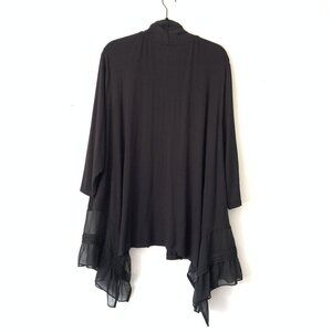 LOGO Lori Goldstein Black Size 3XP Cardigan Open Front Sheer Hem Asymmetrical