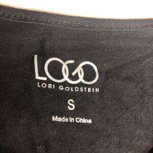 LOGO Lori Goldstein Black Tunic Scoop Neck Ruched 3/4 Sleeves Draping Pockets