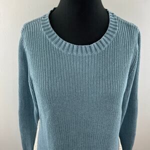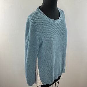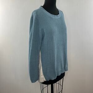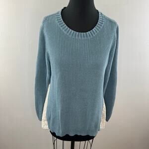 LOGO Lori Goldstein Blue Cotton Blend Asymmetric Sweater w/ Lace Godets Size M