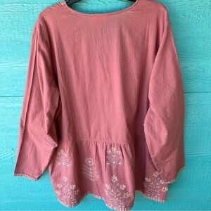 LOGO Lori Goldstein Boho Embroidered Jacket Mauve Size XL Hook Eye Closure NWT