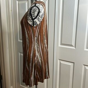 LOGO Lori Goldstein Brown & Silver Sleeveless Dress Light Flowly L