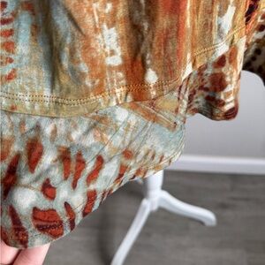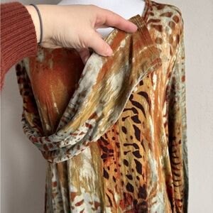 LOGO Lori Goldstein Brown Teal Abstract Print Long Sleeve Tunic Blouse Womens M Hippie Boho