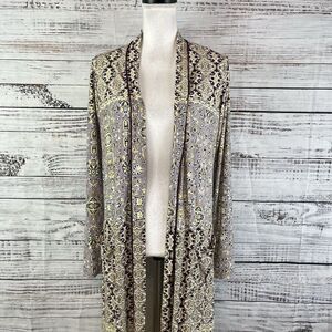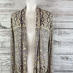 LOGO Lori Goldstein Cardigan Duster House Jacket sz Small Purple Paisley Jersey