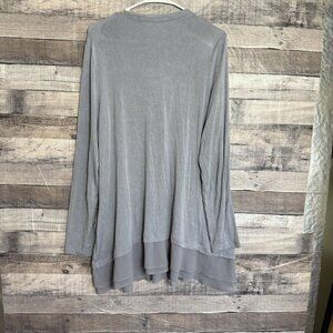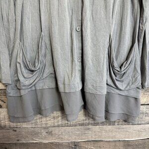 LOGO Lori Goldstein Cardigan Sweater Large Gray Layered Pockets