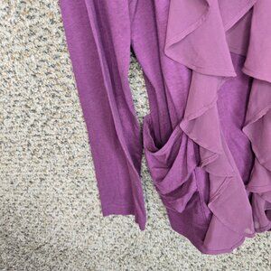 LOGO Lori Goldstein Cardigan Womens Medium Purple Button Up Ruffle Casual Ladies