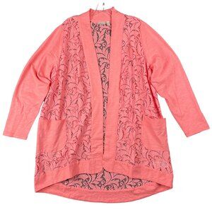 LOGO Lori Goldstein Cardigan 2X Barbiecore Boho Lace Flowy Casual Peasant Hippie