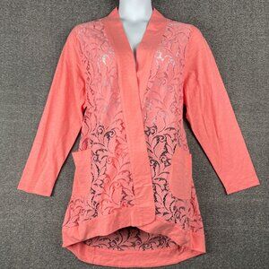 LOGO Lori Goldstein Cardigan Womens Size 2X Lace Flowy Casual Girly Professional