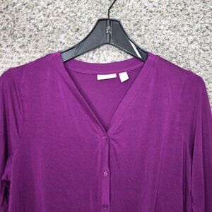 LOGO Lori Goldstein Cardigan Womens XS Purple Button Up Lace Trim Stretch Ladies