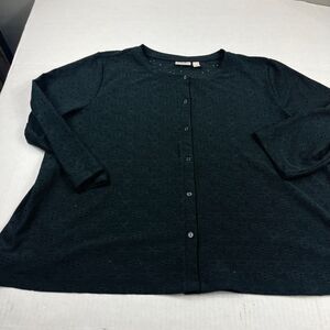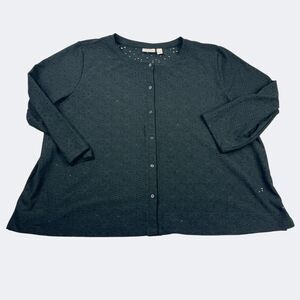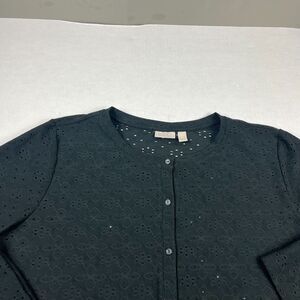LOGO Lori Goldstein Eyelet Button Front Shirt Minimalist 3/4 Sleeve Black Top XL
