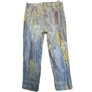 LOGO by Lori Goldstein Womens Graffiti Paint splatter Jeans Medium Wash Festival artsy country hippie colorful