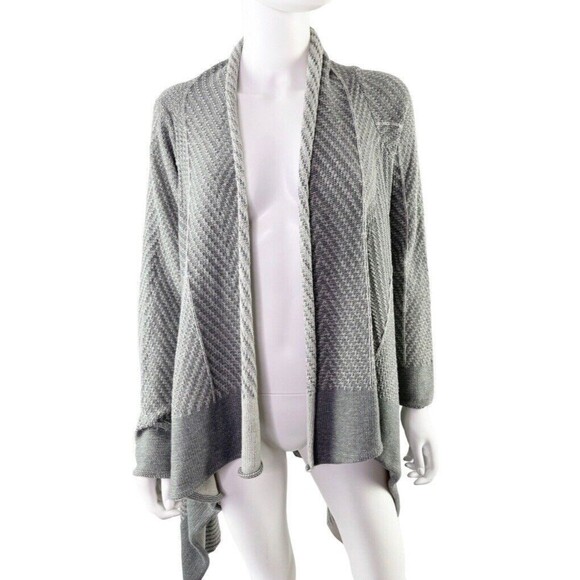 LOGO Lori Goldstein gray patterned draped knit cardigan with asymmetrical hemline. Size Large. Great condition!