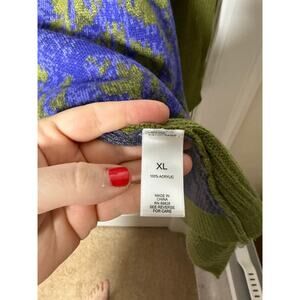 LOGO Lori Goldstein Green Blue Ornate Argyle Knit Side Slit Flowy Sweater XL