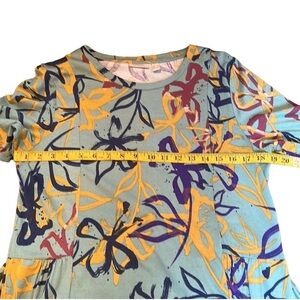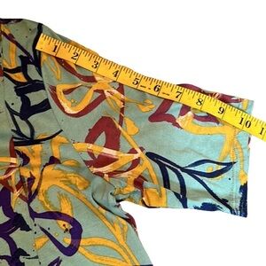 This stunning LOGO by Lori Goldstein dress is a work of art that will impress at any occasion. The green and painted / graffiti floral pattern is eye-catching and perfect for summer, fall, or spring. The midi/maxi length (47”) and pullover closure make it easy and comfortable to wear, while the round neck and short sleeves add a casual touch.