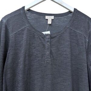 LOGO Lori Goldstein Henley Tee Plus Size 1X Gray Womens Tunic Top 3/4 Sleeve NWT