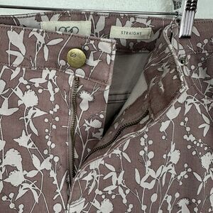 LOGO Lori Goldstein Jeans Women Size 20W Taupe Floral Stretch Twill Straight