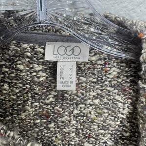 LOGO Lori Goldstein L Cardigan Sweater Speckled Knit Open Front Pockets Cozy