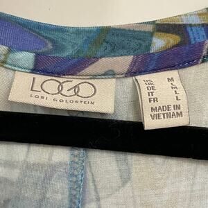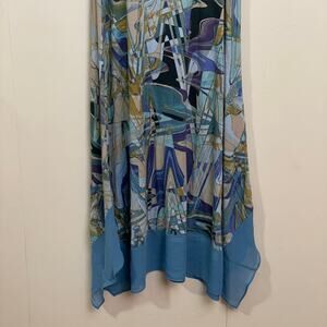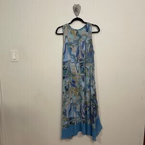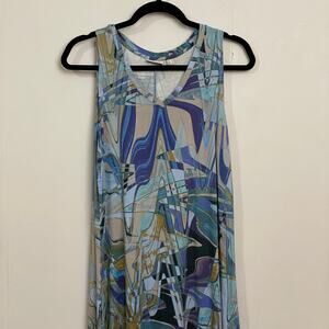 LOGO Lori Goldstein M maxi dress abstract summer sleeveless blue yellow casual