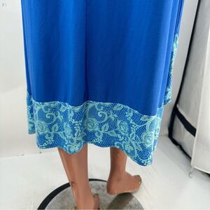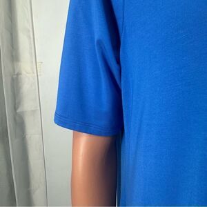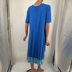 LOGO Lori Goldstein MP Blue S/S Jersey knit Blue Print Handkerchief Hem Dress