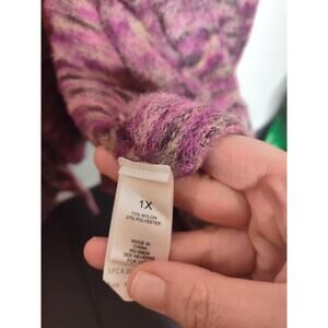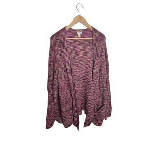 LOGO Lori Goldstein Marled Eyelash Open Cardigan 1X