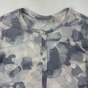 LOGO Lori Goldstein Mesh Button Shirt Cardigan Watercolor Nylon Blend Stretch L