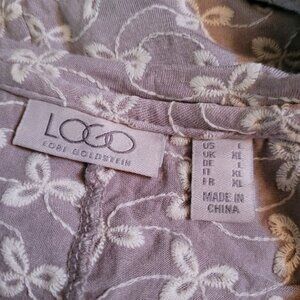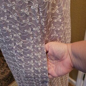 LOGO Lori Goldstein Midi Dress Eyelet Gray White Side Slit Casual Sleeveless XL