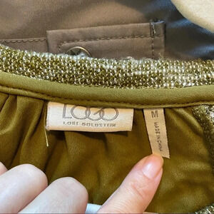 LOGO Lori Goldstein Olive Green Tunic Size Medium Two front pockets Elaborate floral detail on back