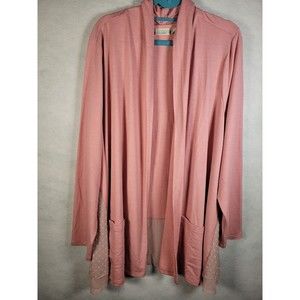 LOGO Lori Goldstein Open Front Cardigan Sweater Womens Plus Size 2X Pink