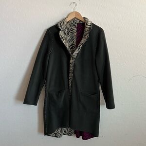 LOGO Lori Goldstein Reversible Fleece Coat Multicolor Snap