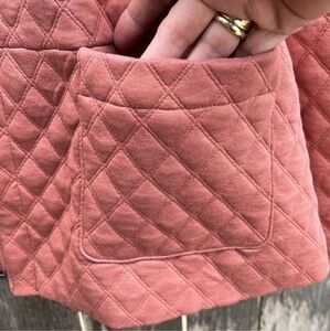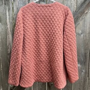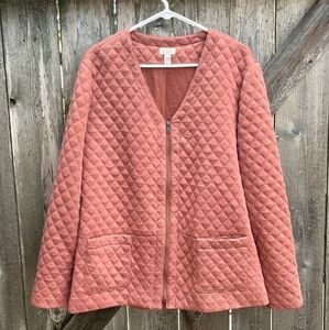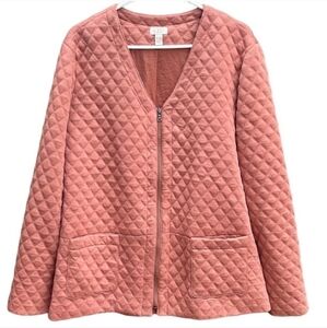 LOGO Lori Goldstein Salmon Quilted Zip Front Jacket Women's XS V-Neck Warm EUC