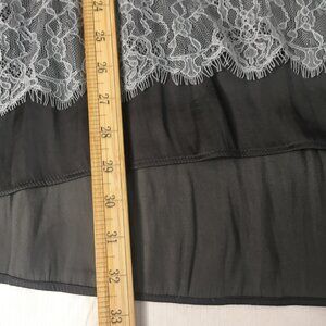 Color: Heather gray body with gray lace trim and dark chiffon layered hem