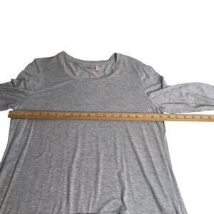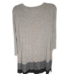 LOGO Lori Goldstein Shirt Womens Large Gray Tunic Lace Chiffon Hem 3/4 Sleeve