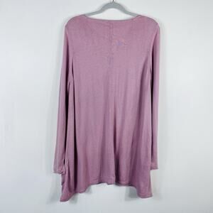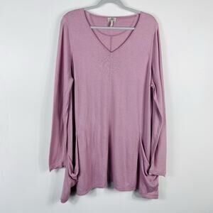 LOGO Lori Goldstein Size XL Cotton Cashmere V-Neck Tunic Sweater Pink Pockets
