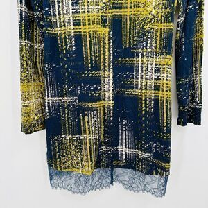 LOGO Lori Goldstein Size XS Navy Blue & Yellow Long Sleeve Lace Trim Tunic Top
