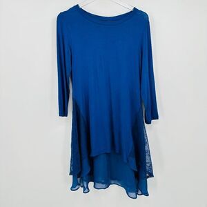 LOGO Lori Goldstein Size XS Navy Blue Lace Back Stretch Tunic Top 3/4 Sleeve