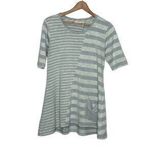 LOGO Lori Goldstein Small S Gray Striped Pocket Cotton Blend Knit Tunic Sweater