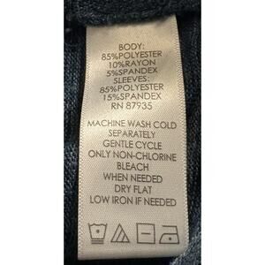 The LOGO Lori Goldstein Teal Slub Full Zip Knit Jacket Cardigan in size Large is a stylish and versatile outerwear piece suitable for various occasions. Made from a blend of polyester, rayon, and spandex, this long-sleeved jacket features a solid green color with a zip closure and accent zipper detail. It has a regular fit and is machine washable, making it easy to care for. The jacket also includes pockets, is breathable, and offers stretch for comfort. Perfect for the winter, fall, and spring seasons, this classic and colorful jacket is a perfect addition to any woman's wardrobe. Chest 23”. Length 29 1/2”.