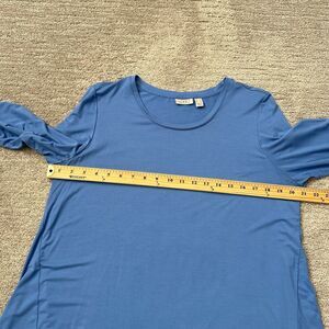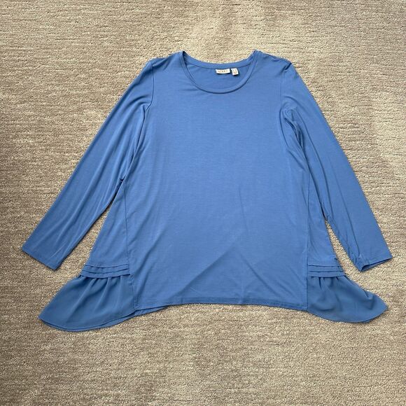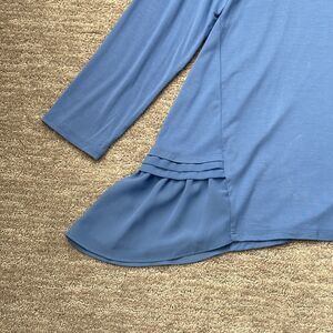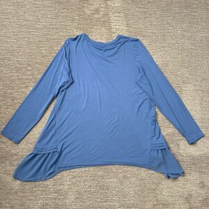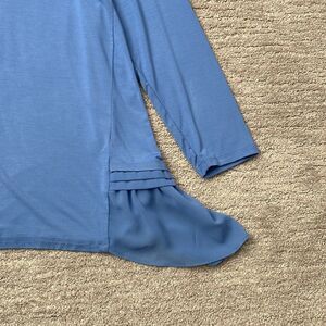 LOGO Lori Goldstein Top Womens Large Blue Sheer Asymmetrical Hem Accents Flowy