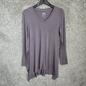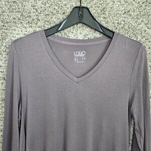 LOGO Lori Goldstein Top Womens Small Gray Layers Tunic V Neck Stretch Ladies