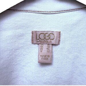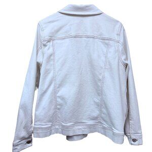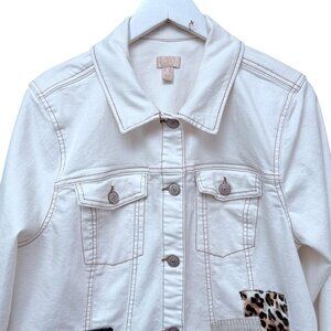 LOGO Lori Goldstein White Jean Jacket Size 16 Boho Artsy Patchwork Denim