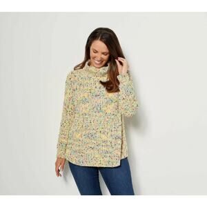 LOGO Lori Goldstein Women's Chenille Turtleneck Sweater Buttercream Yellow 1X