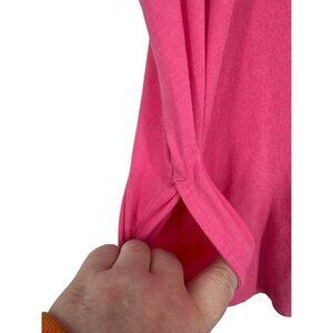 This women's top offers a relaxed fit with a scoop neckline and short sleeves. Vibrant pink with side slits, it combines comfort and style.