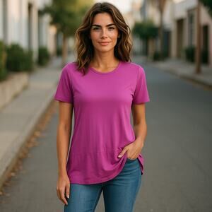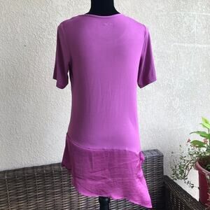 LOGO Lori Goldstein Womens Top Size XS Scoop Neck Asymmetric Satin Hem Purple