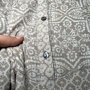LOGO Lori Goldstein XL Button Down Tunic Top Geometric Print 3/4 Sleeve