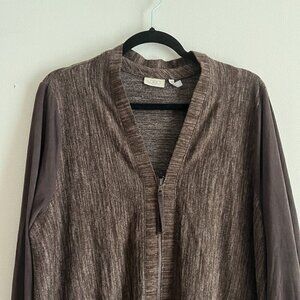 LOGO By Lori Goldstein Women XL Brown Pockets Full Zip Lagenlook Faux Suede Sleeves Knit Cardigan.