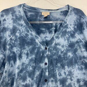 LOGO Lori Goldstein size 1X Blue Tie Dye V-Neck Long Sleeve Button Down Stretch