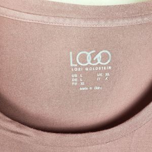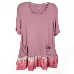 LOGO Lori Goldstein tie-dye ruffle hem pink tunic top size Large