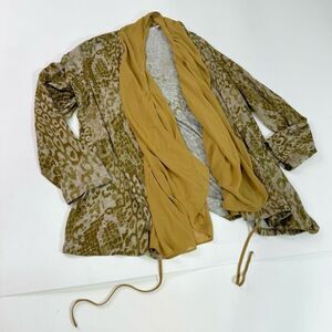 LOGO Lounge Cardigan Womens 3X Green Snakeskin Pockets Lori Goldstein Flowy